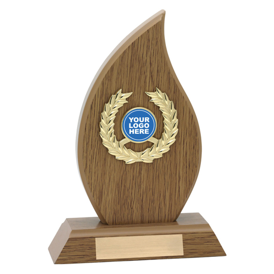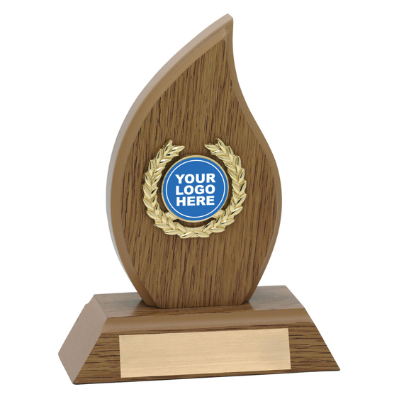 Appealing design of wood trophy perfect for an affordable award and to show off your insert.