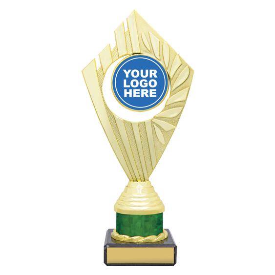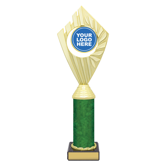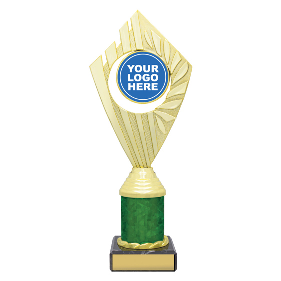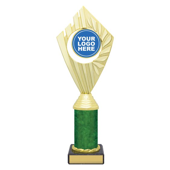 Flyer Series of trophies feature beautifully designed holders on columns of different colours - option to showcase 25 or 50mm logo or insert.