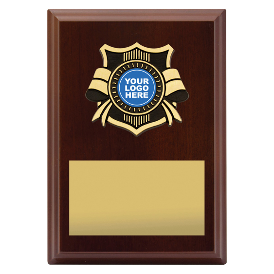 Outstanding range of walnut plaques with iconic shield shape holder to showcase your custom logo.