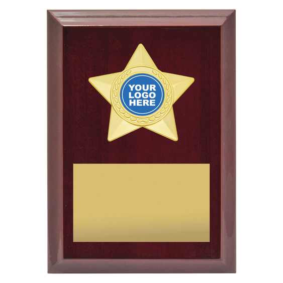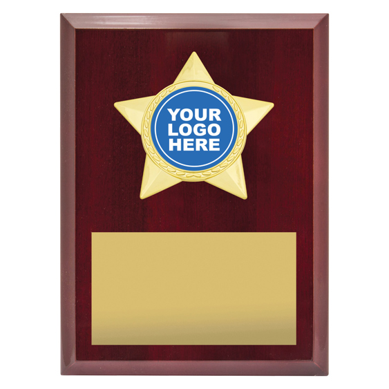 Star Plaques in gloss Rosewood finish include standout star holder to frame your custom logo. 25 or 50mm versions available.