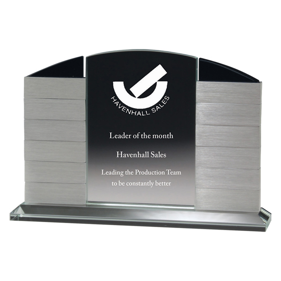 An excellent perpetual award option to record the recurring achievements of your employees and personnel. The Legacy Landmark provides an innovative glass and metal design - 12 metal attachments that can be replenished as needed as the lifetime of the award progresses. You can purchase metal attachments separately. Width of glass provided in the additional information.
