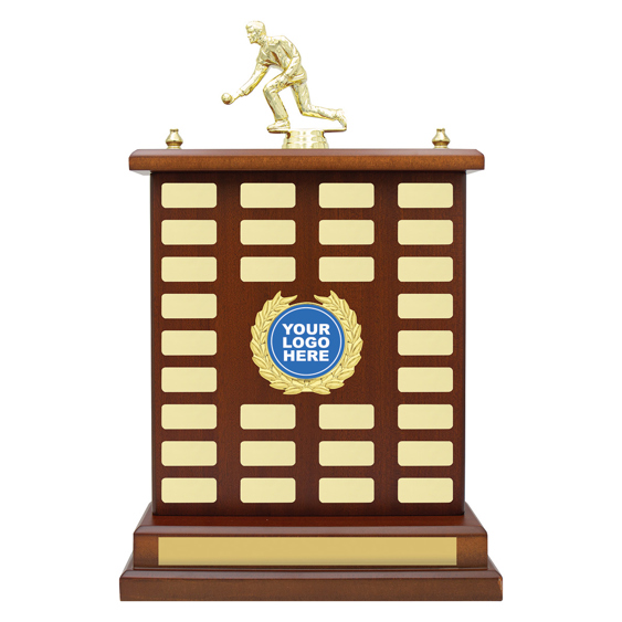 Outstanding perpetual trophy with ample space for your engraving - select holder for your logo and top for your sport or activity.