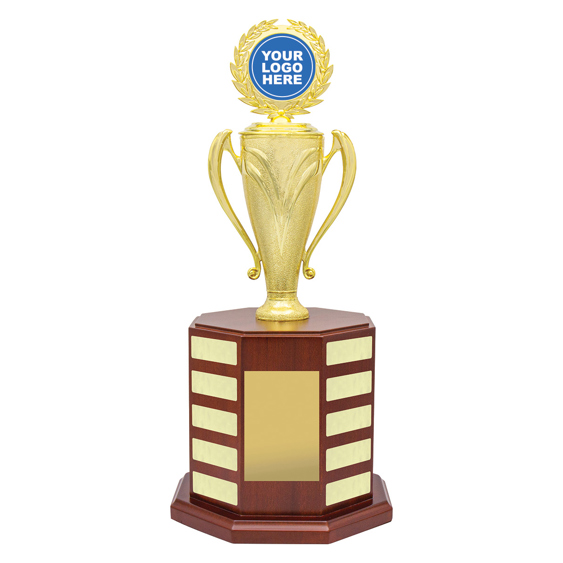 Traditional timber perpetual cup base with multiple sides for your engraving requirements - use top or cup with this perpetual to suit your club or organisation.