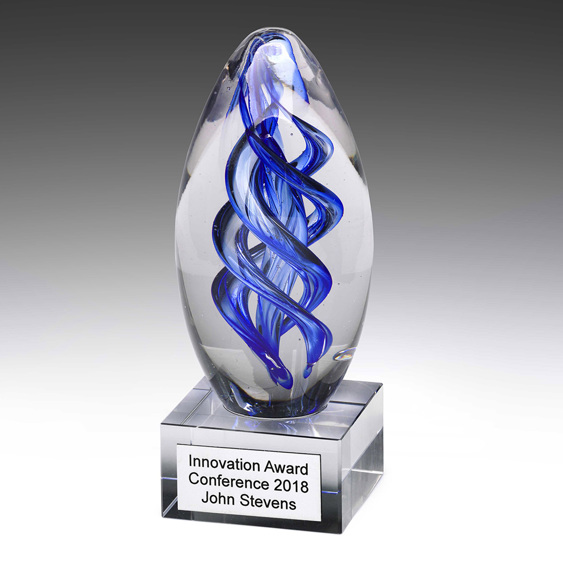 The Blue Dome Award features an elegant blue helix pattern and clear crystal base for engraving. Art Glass range offers variety of bold shapes and exciting colour combinations. Art Glass can be considered an effective alternative to traditional award options.