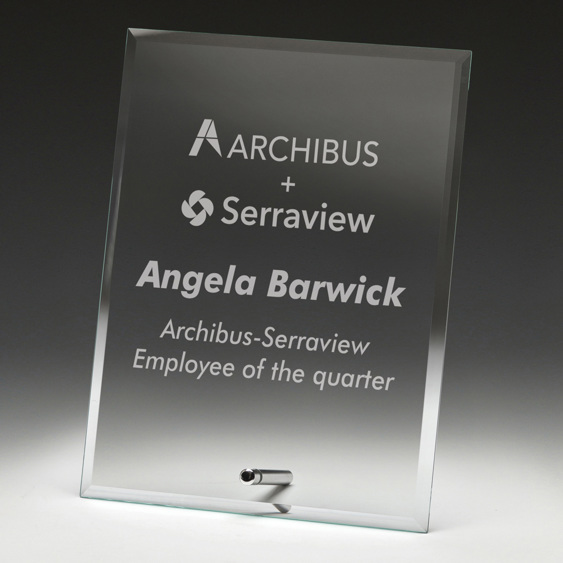 This clear glass plaque award is an easy and effective award choice. Perfect for corporate and sporting awards, plaques remain affordable and show off your engraving requirements.