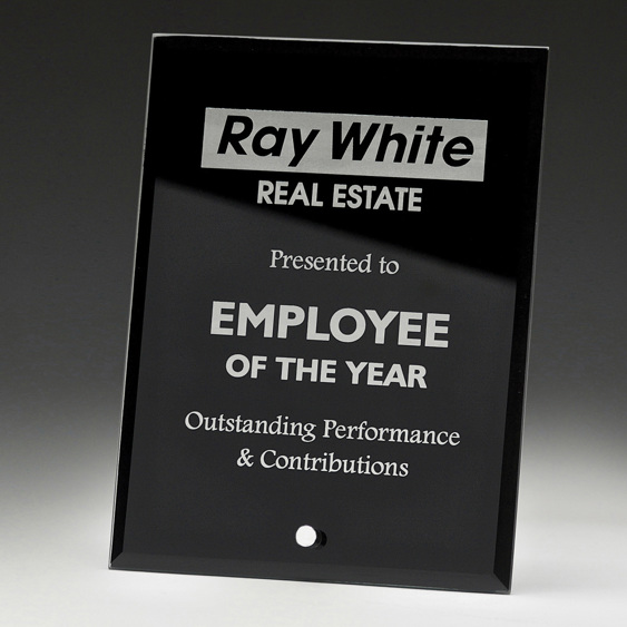 Craft Plaques offer an affordable glass award option in different colours to suit your requirements. Budget black plaques designed to showcase your engraving.