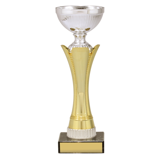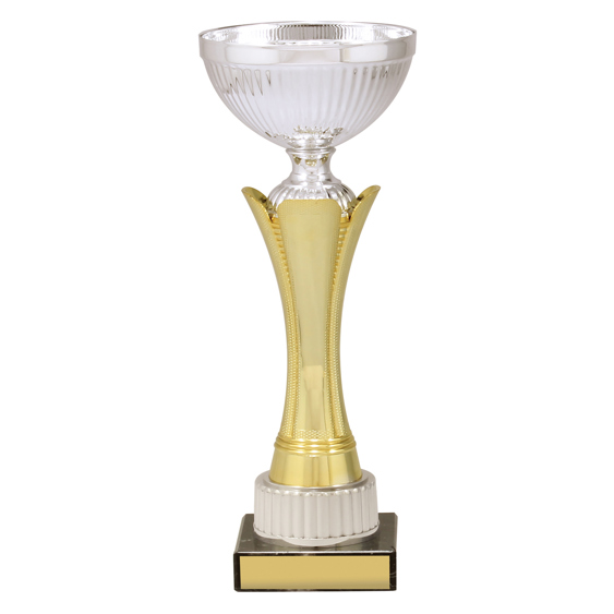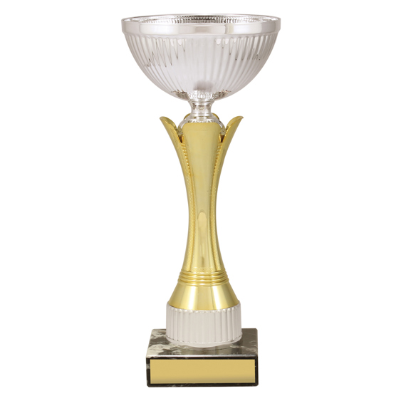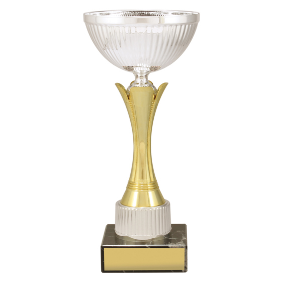 Elegant design for series of cups that feature brilliant metal bowls and classic marble bases. Available in 5 sizes - trophy cups also feature striking gold and silver colour combination.
