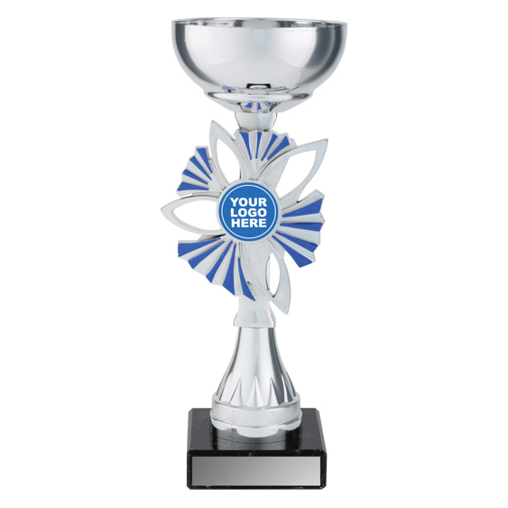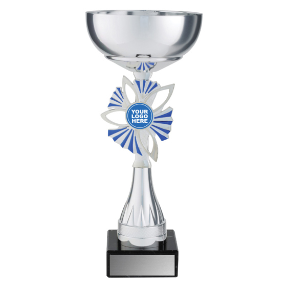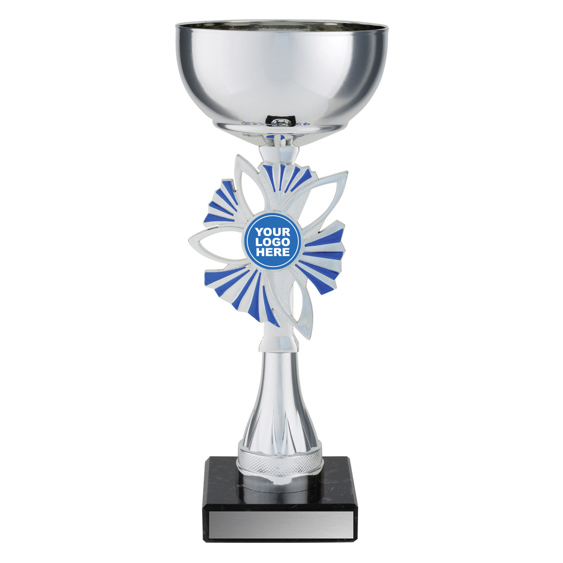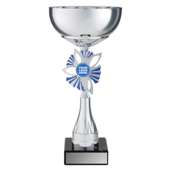 Plumeria Cups present a brilliant design of award with appealing silver and blue colours combined with marble base and metal bowl. Space for your insert if required.