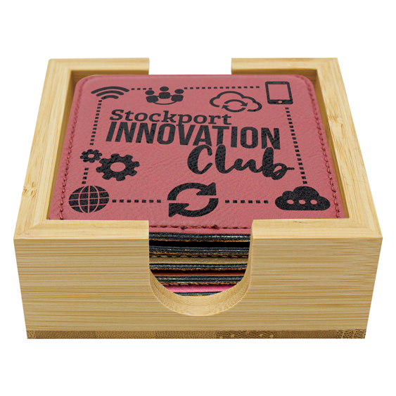 Use this bamboo coaster holder to fill up with your customised coasters of the material of your choosing.