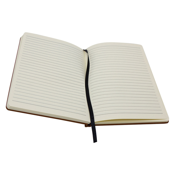 A5 Journal features 112 lined pages and black satin bookmark. Rawhide cover provides canvas for your exact engraving requirements.