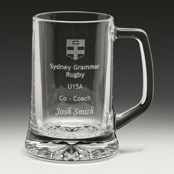 Glass tankard part of the range of premium glassware. A popular engravable award and gift idea particularly suited to recognise the achievements of your sporting club or team.