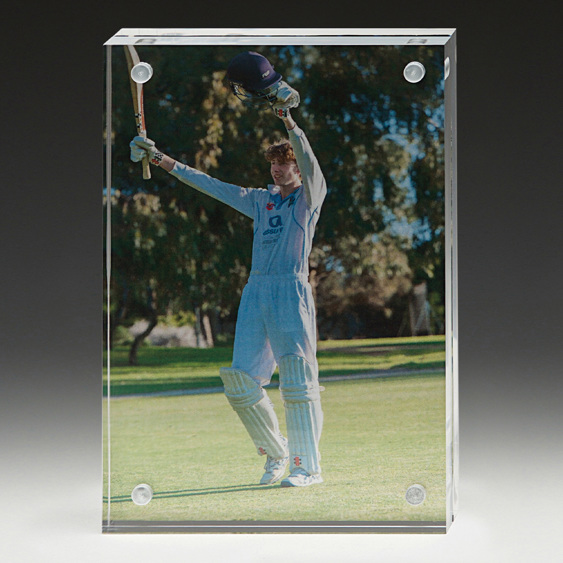 Series of acrylic blocks connect together with acrylic. Show off your photos, signs, certificates as well as your engraving with the Clutch series of acrylic frame blocks.
