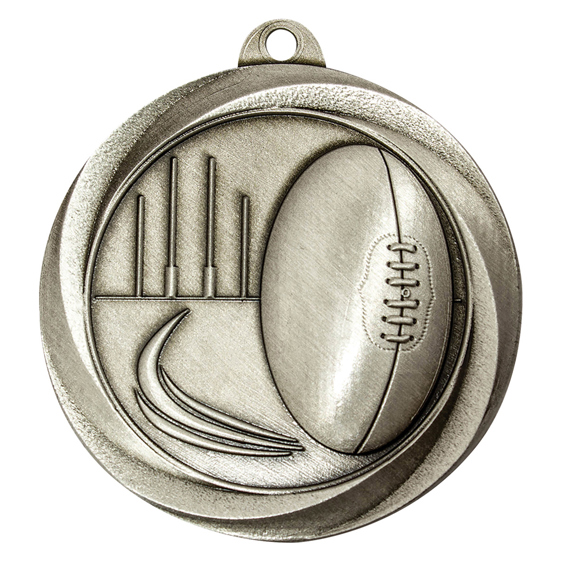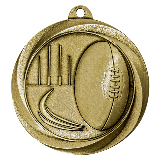 Economic series of medals to suit your budget requirements - the 3D Medal series presents excellently designed medals with high relief and detail to represent your sport or activity. Footy theme design features exciting combination of ball and posts - space for your engraving on the back of every medal. Plenty of medal box and ribbon options to complete your selection.