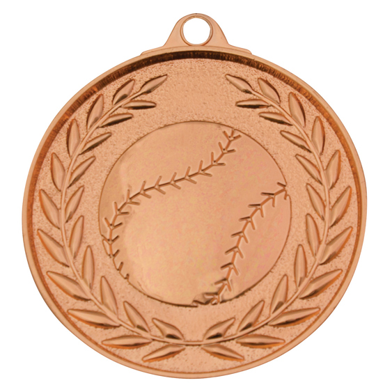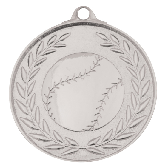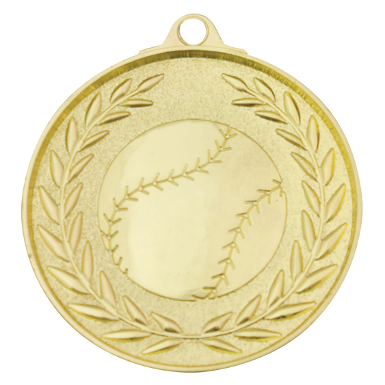 Classic wreath inspired medal for Baseball / Softball. A generic theme suitable for all players features the iconic ball and celebratory wreath representing high achievement.