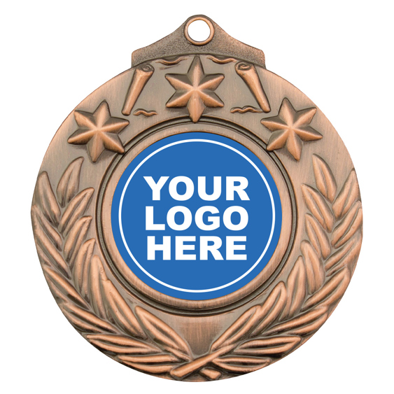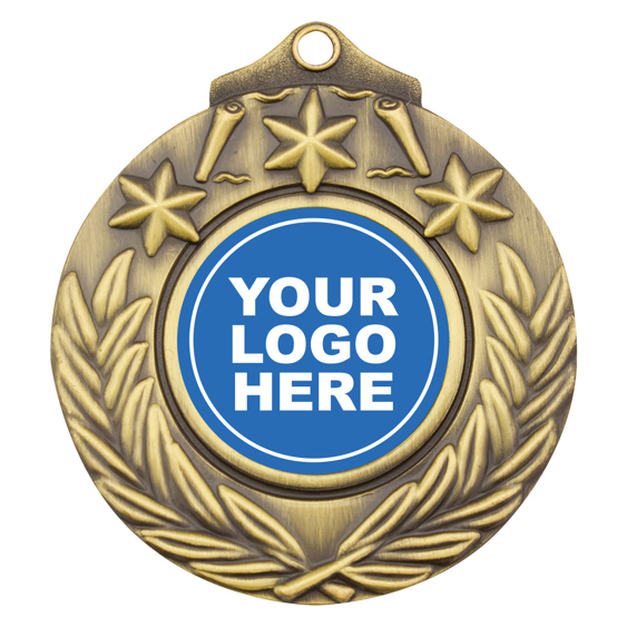 Victory style medal in gold, silver and bronze. Design features both stars and a crossed wreath to commemorate your event or presentation. Inserts available for all activities and consider your custom options. Ribbons in all colours and medal presentation boxes also available.