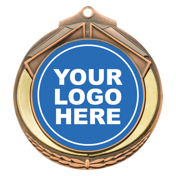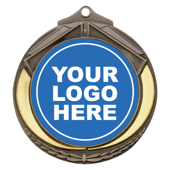 Popular and versatile medal design. Larger, more prestigious medal with space for 50mm insert. Inserts for all sports available and consider your own personalised custom logo centres. Ribbons available in all colours and medal boxes to suit.