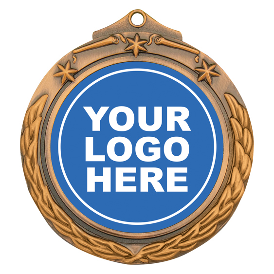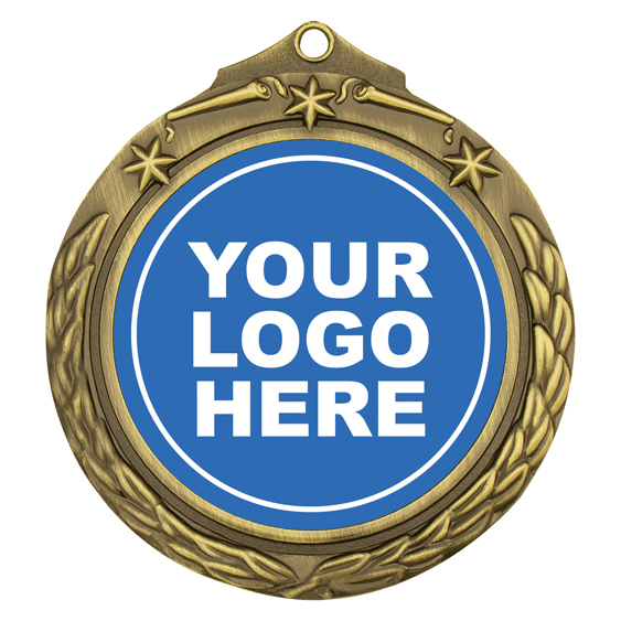 Victory style medal in gold, silver and bronze. Design features both stars and a crossed wreath to commemorate your event or presentation. Larger, more prestige version of the medal for a 50mm centre insert. There are centre inserts available for all activities and you can consider your custom options. Ribbons in all colours and medal presentation boxes also available.