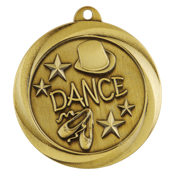 Economic series of medals to suit your budget requirements - the 3D Medal series presents excellently designed medals with high relief and detail to represent your sport or activity. Dance theme design features stars, hat and shoes - space for your engraving on the back of every medal. Plenty of medal box and ribbon options to complete your selection.