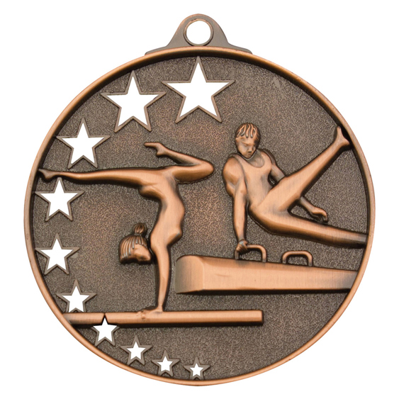 Bright gold, silver and bronze medals for Gymnastics. A popular medal series, the Star Series features a unique hollow multi-star design and extra thick edge. There is a rectangle panel on the back of each medal for your engraving. Ribbons available in all colours and plenty of medal boxes to suit.