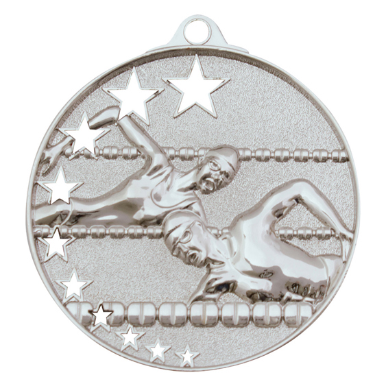 Bright gold, silver and bronze medals for Swim. A popular medal series, the Star Series features a unique hollow multi-star design and extra thick edge. There is a rectangle panel on the back of each medal for your engraving. Ribbons available in all colours and plenty of medal boxes to suit.