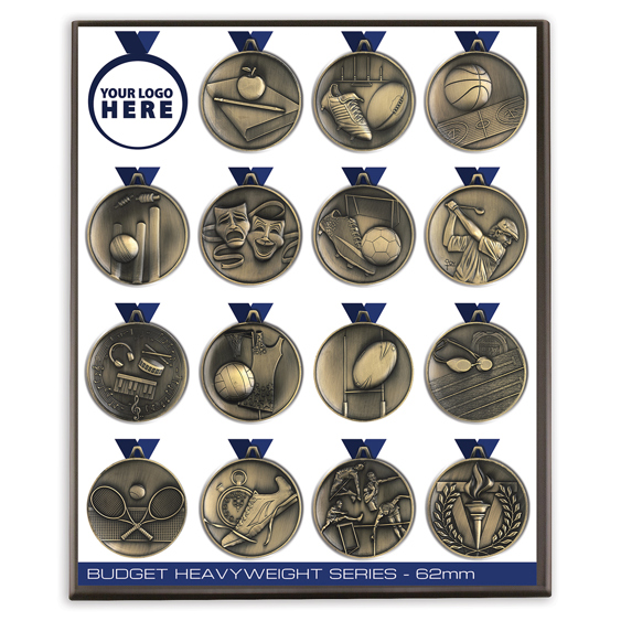 Display boards available featuring popular medal and product series. Enquire about customising any board with your logo.