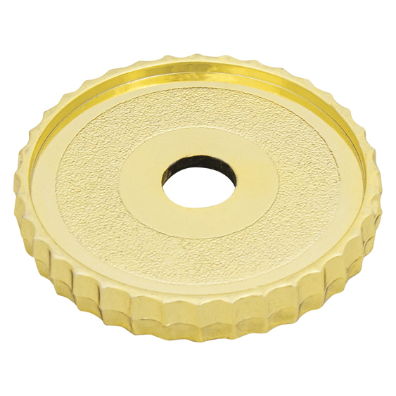 Bigger, ribbed flat lid for columns / extrusion. Finished in bright gold.