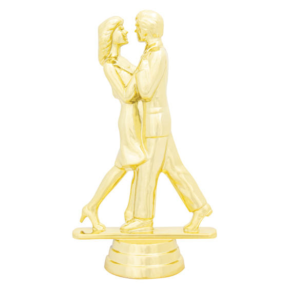 Traditional bright gold trophy top features dancing couple in a modern dancing style. Plenty of dance tops and figurines available to choose for your specific trophies and awards. Wide range of base and trophy riser parts to consider when building your multi-part trophies.