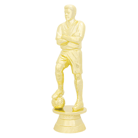 Male football hero top in bright gold for soccer trophies. Male and female figures available. Plenty of base and riser / column options available to complete your award selection.