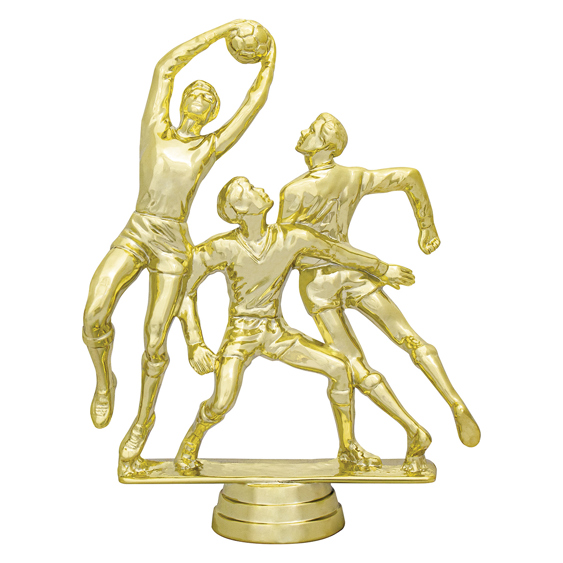 Traditional gold top featuring three players in action for soccer trophies. Plenty of base and riser / column options available to complete your award selection.