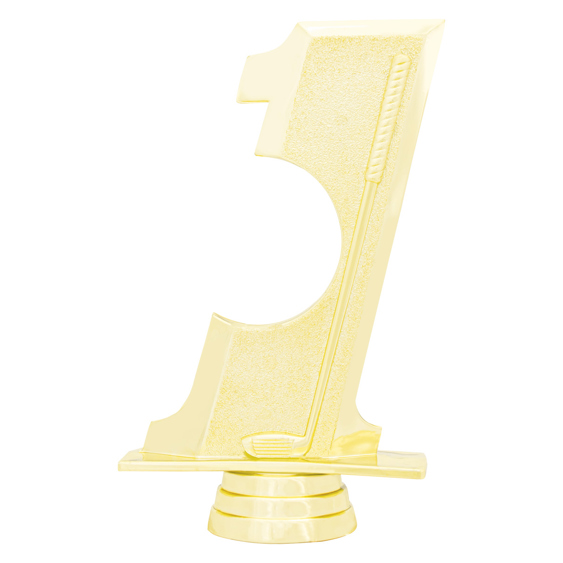 Reliable and affordable "Hole in One" gold trophy top for that special player in your gold tournament and event. Place golf ball in the circular space provided. Range of bases to suit trophy top. Browse the complete range of tops and figures for your golfing trophy needs.