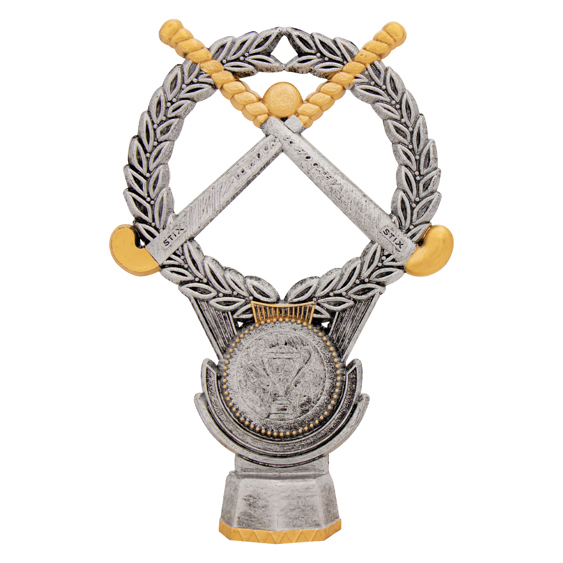 Range of hockey tops available for constructing your trophy or award. Wreath hockey theme in antique silver is a generic theme featuring crossed sticks and hockey ball combination. Plenty of base and riser options available to satisfy your complete award requirements.