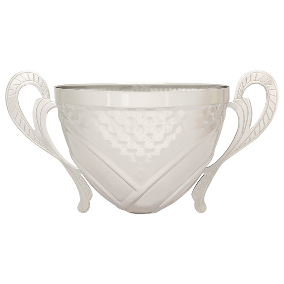 Affordable bowl choice to complete any trophy cup selection for your presentation. Available in 4 convenient sizes and rendered with an elevated pattern and design accents. Variety of base and riser part components to match these bowls - lids to suit.