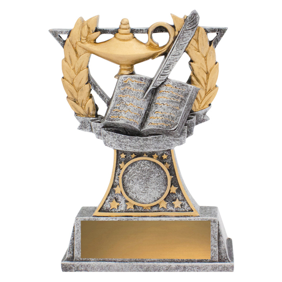 Classic wreath and stars inspired design of trophy for academic and education awards. Series of trophies perfect for your logo insert and ample space for engraving.