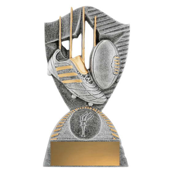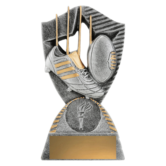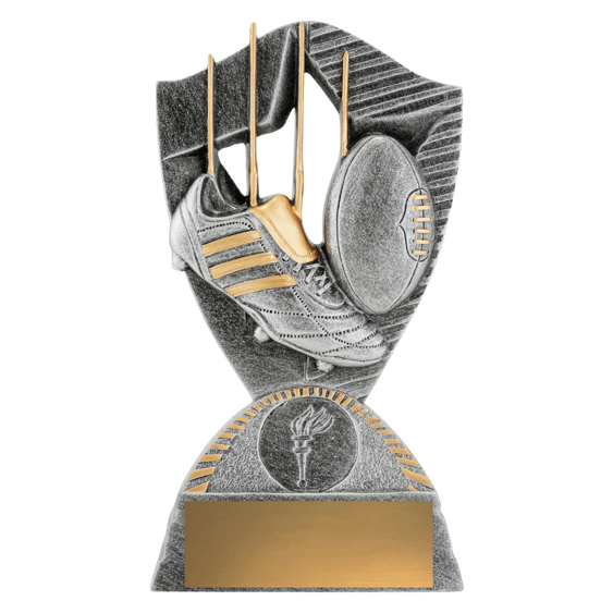 Brilliant footy trophy for your team or club. The Gambit offers a dynamic theme in antique silver & gold - space for your custom logo.