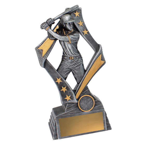 Inspiring design for your softball trophies, Flag series features batter in action and complete with classic antique silver colours. Substantial trophy with space for customisation if needed.