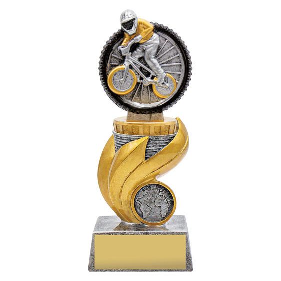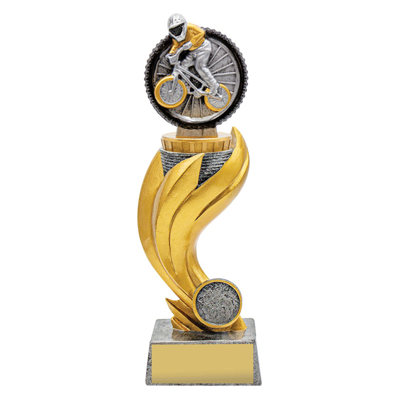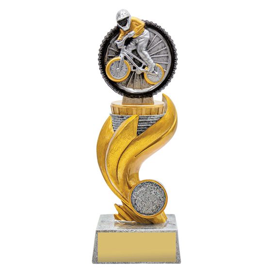 Flame trophy series is a popular and reliable choice featuring a dynamic design that celebrates your sport or activity. BMX Flame Trophy series highlights the BMX rider in action. BMX trophies available in 3 convenient sizes with the option of customisation.