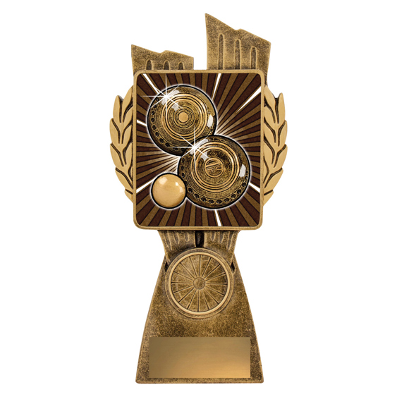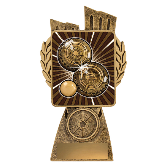 This Antique Gold Lynx Trophy is the perfect theme award for Lawn Bowls players of all ages. Featuring a classic wreath and vibrant design, these Bowls trophies are customisable. Lawn Bowls trophies available in 4 impressive sizes. Lynx medal on offer completes the range of awards.