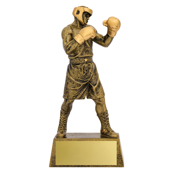 Classic trophy series perfect for boxing events and competitions. Available in 3 sizes, these boxing trophies highlight the textbook boxing pose and the boxer mid-action. Finished in traditional antique gold trophy colour.