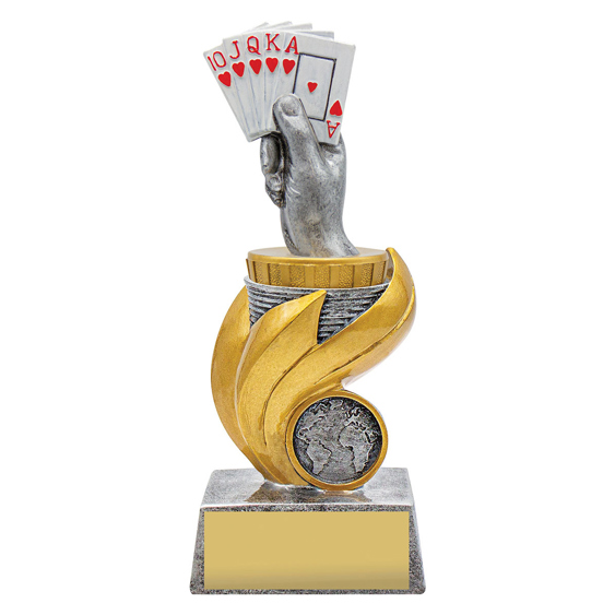 Flame trophy series is a popular and reliable choice featuring a dynamic design that celebrates your sport or activity. Cards Flame Trophy series highlights that perfect hand. Cards trophies available in 3 convenient sizes with the option of customisation.