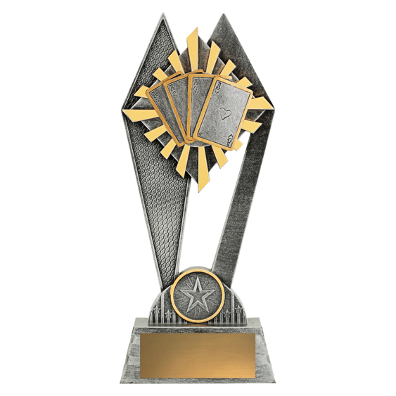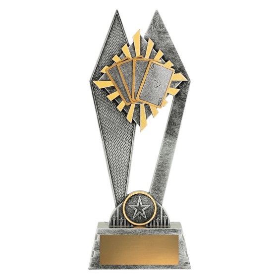 The Peak Series is an innovative set of trophies offering super value for such an impressive size range. An elevated design that features a universal theme useful for various card playing activities. Available in 3 sizes.