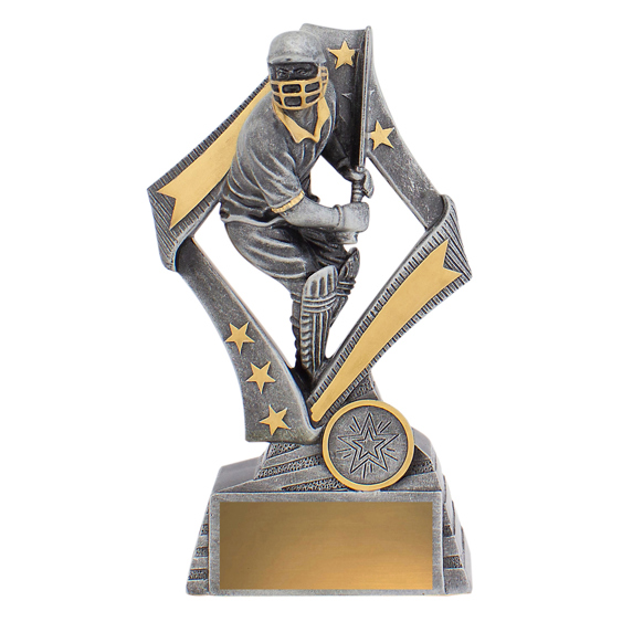 Inspiring design for your cricket trophies, Flag series features batsman in action and complete with classic antique silver colours. Substantial trophy with space for customisation if needed.