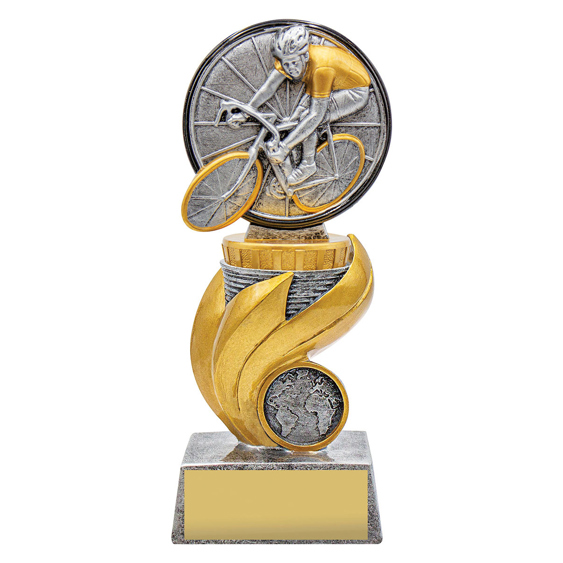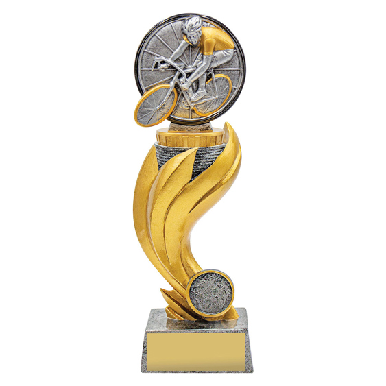 Flame trophy series is a popular and reliable choice featuring a dynamic design that celebrates your sport or activity. Cycling Flame Trophy series highlights a stylish cyclist in action. Cycling trophies available in 3 convenient sizes with the option of customisation.