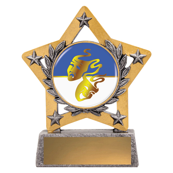 Star inspired design with traditional gold and silver colours - showcase brilliant colour image for your sport or activity. Mini stars offer great value.