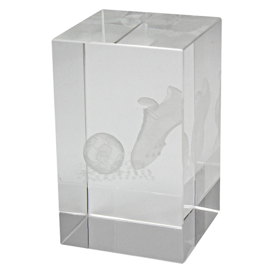 Hologram award for Football features 3D theme design with iconic elements - football & boot. A trusted option for various Football events and presentations, a prestige crystal block supplied in a presentation gift box.
