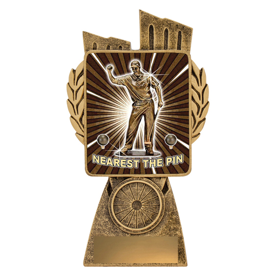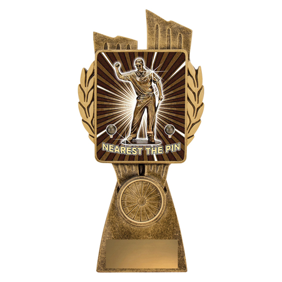 This Antique Gold Lynx Trophy is the perfect award for Nearest the Pin competitions at your golfing event. Featuring a classic wreath and vibrant design, Golf trophies are customisable and available in 4 impressive sizes.
