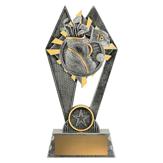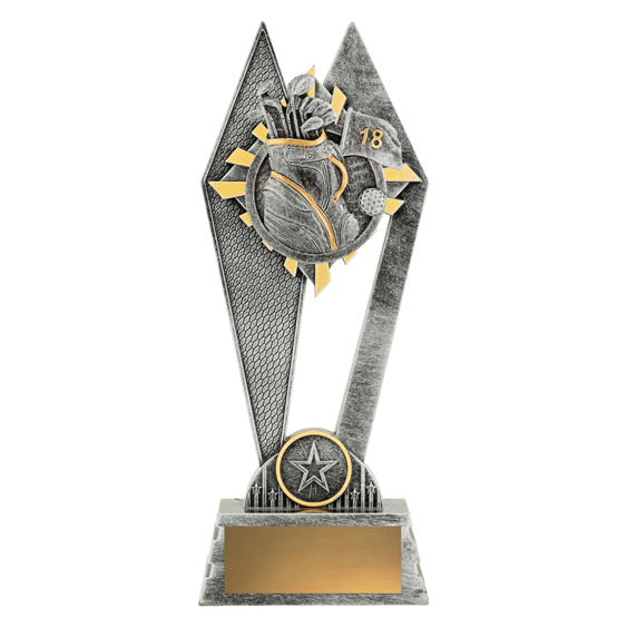 The Peak Series - for Golf - is an innovative trophy series offering super value for such an impressive size range. An elevated design that showcases the iconic golf bag, ball and pin elements against a vibrant sunray style background. Check out the Peak design in your sport or activity.