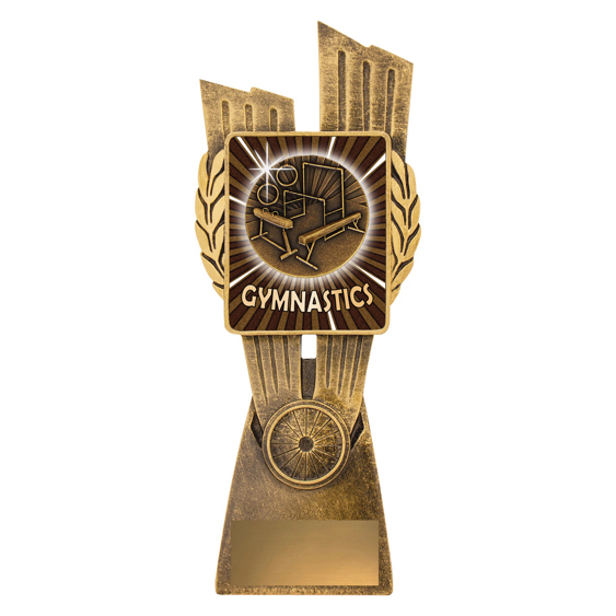 This Antique Gold Lynx Trophy is the perfect theme award for Gymnastics, boys or girls and all ages. Featuring a classic wreath and vibrant design, Gym trophies are customisable and available in 4 impressive sizes.