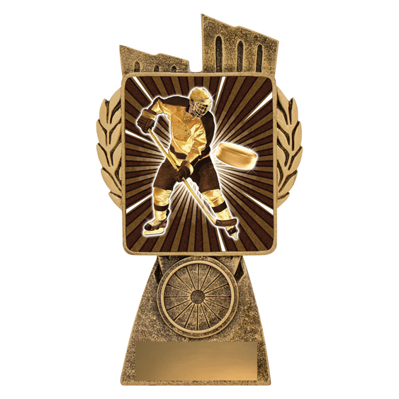 This Antique Gold Lynx Trophy is the perfect theme award for your Ice Hockey team or club. Featuring a classic wreath and vibrant design, Ice Hockey trophies are customisable and available in 4 impressive sizes.
