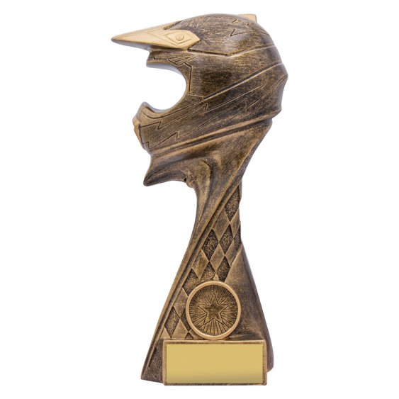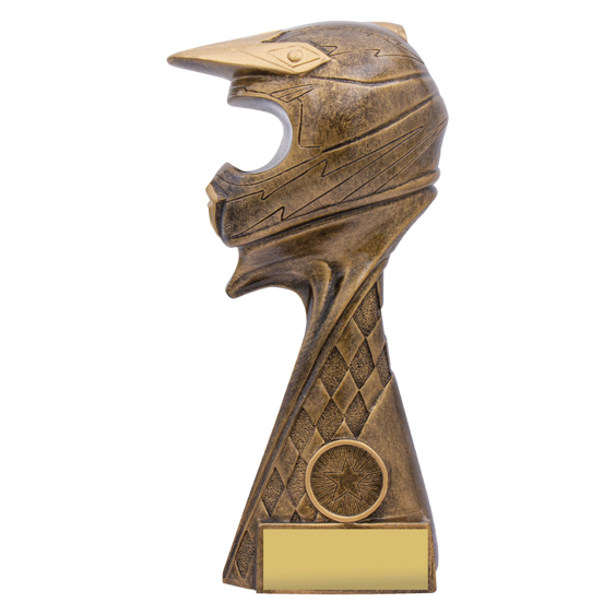 The Pinnacle Series features an innovative design that showcases the Motocross Helmet. Classic trophy gold colours and with space for 25mm insert if required.