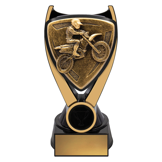 Nova series of trophies present a unique black & gold colour combination with a bold 3D type design to really celebrate the sport or activity of your awards.